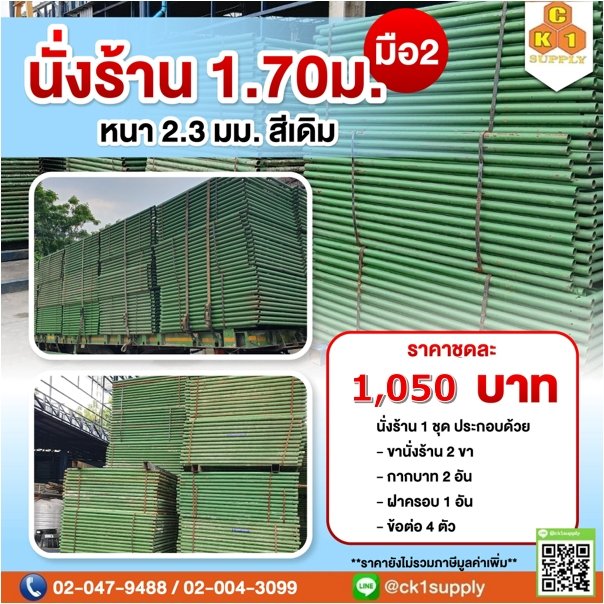 นั่งร้านครบชุด (มือสอง) สีเดิม ขนาด 1700 x 1219 mm. หนา (2.3 mm.)